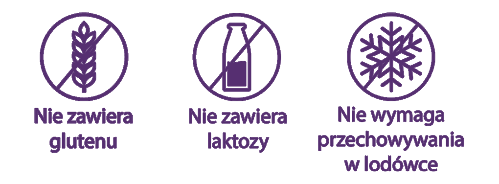 - Brak substancji słodzących i glutenu
