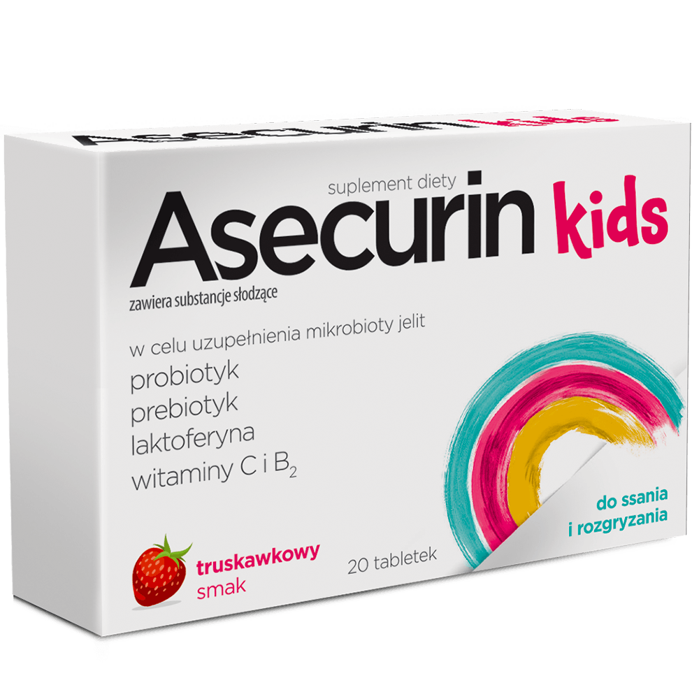 Dodatkowo suplement diety Asecurin kids zawiera ryboflawinę (wit. B2), która pomaga w utrzymaniu prawidłowego stanu błon śluzowych oraz witaminę C, która wspiera odpowiednie funkcjonowanie układu odpornościowego.